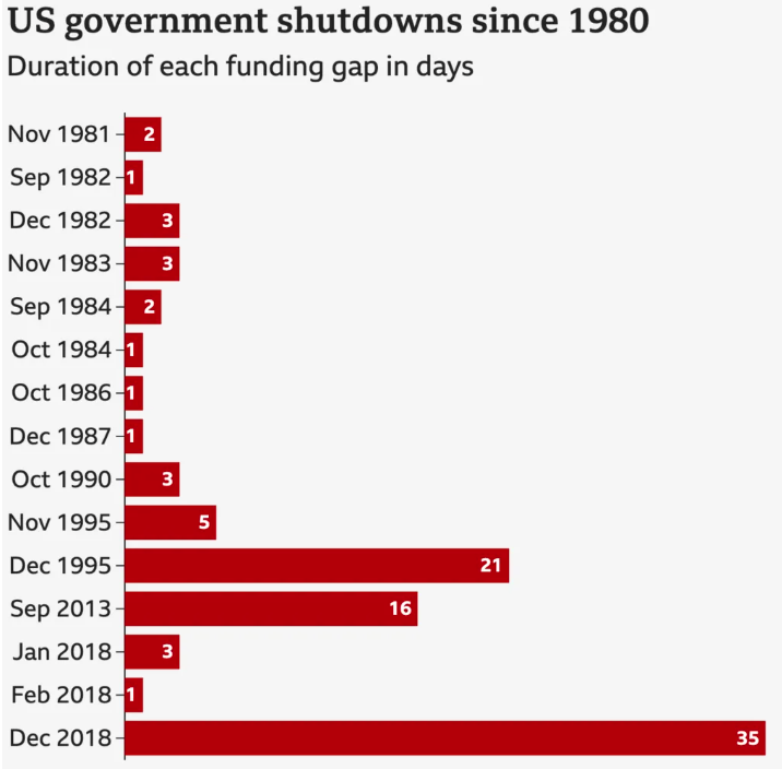 Με δέκα shutdown τα τελευταία 40 χρόνια και το ρεκόρ των 35 ημερών στη διάρκεια του τέταρτου κυβερνητικού λουκέτου το 2018-2019 επί θητείας του Ντόναλντ Τραμπ , ο χρόνος μετρά αντίστροφα για την «ώρα μηδέν». Από το πρώτο λεπτό της Τετάρτης 1 Οκτωβρίου, οι Ηνωμένες Πολιτείες αναμένεται να έχουν το πρώτο shutdown την τελευταια επταετία, που χαρακτηρίζεται ήδη μοναδικό καθώς εκφράζονται φόβοι ότι θα συνοδεύεται από μαζικές απολύσεις.