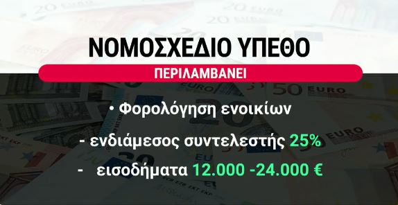 - Ενδιάμεσος συντελεστής 25% για εισοδήματα από ενοίκια ύψους 12.000 – 24.000 ευρώ.