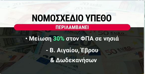 Μειωμένοι συντελεστές κατά 30% στα νησιά του Ανατολικού και Βορειοανατολικού Αιγαίου, που διαμορφώνονται σε 17% και 9%.