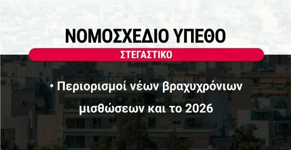 - Παράταση περιορισμών για τη βραχυχρόνια μίσθωση νέων ακινήτων τουλάχιστον έως το 2026, αρχικά για περιοχές όπως η Αθήνα.