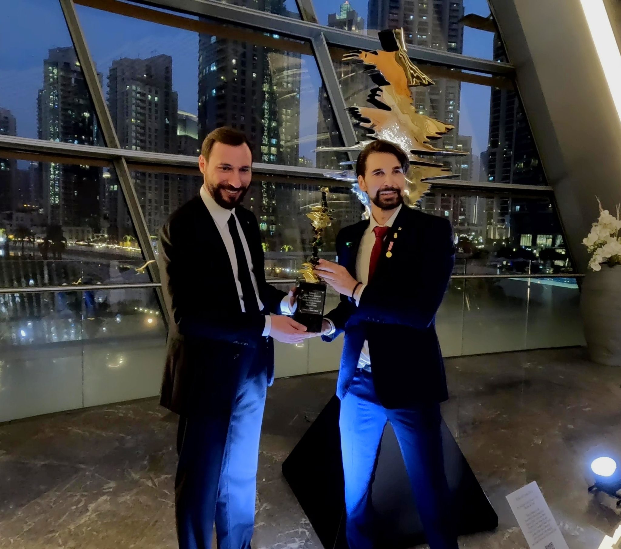 Στιγμιότυπο από την εκδήλωση των αποκαλυπτηρίων του γλυπτού στο Ντουμπάι