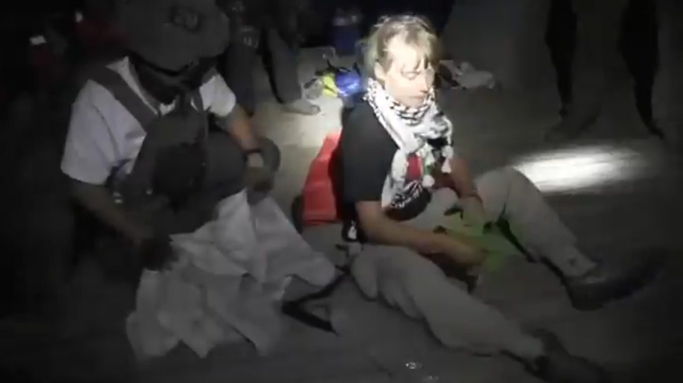 Ένα βίντεο από το ισραηλινό υπουργείο Εξωτερικών, επαληθευμένο από το Reuters, έδειχνε τη Σουηδή ακτιβίστρια για το κλίμα Γκρέτα Τούνμπεργκ, μία από τις πιο γνωστές επιβάτες της αποστολής, καθισμένη σε κατάστρωμα, περικυκλωμένη από στρατιώτες.