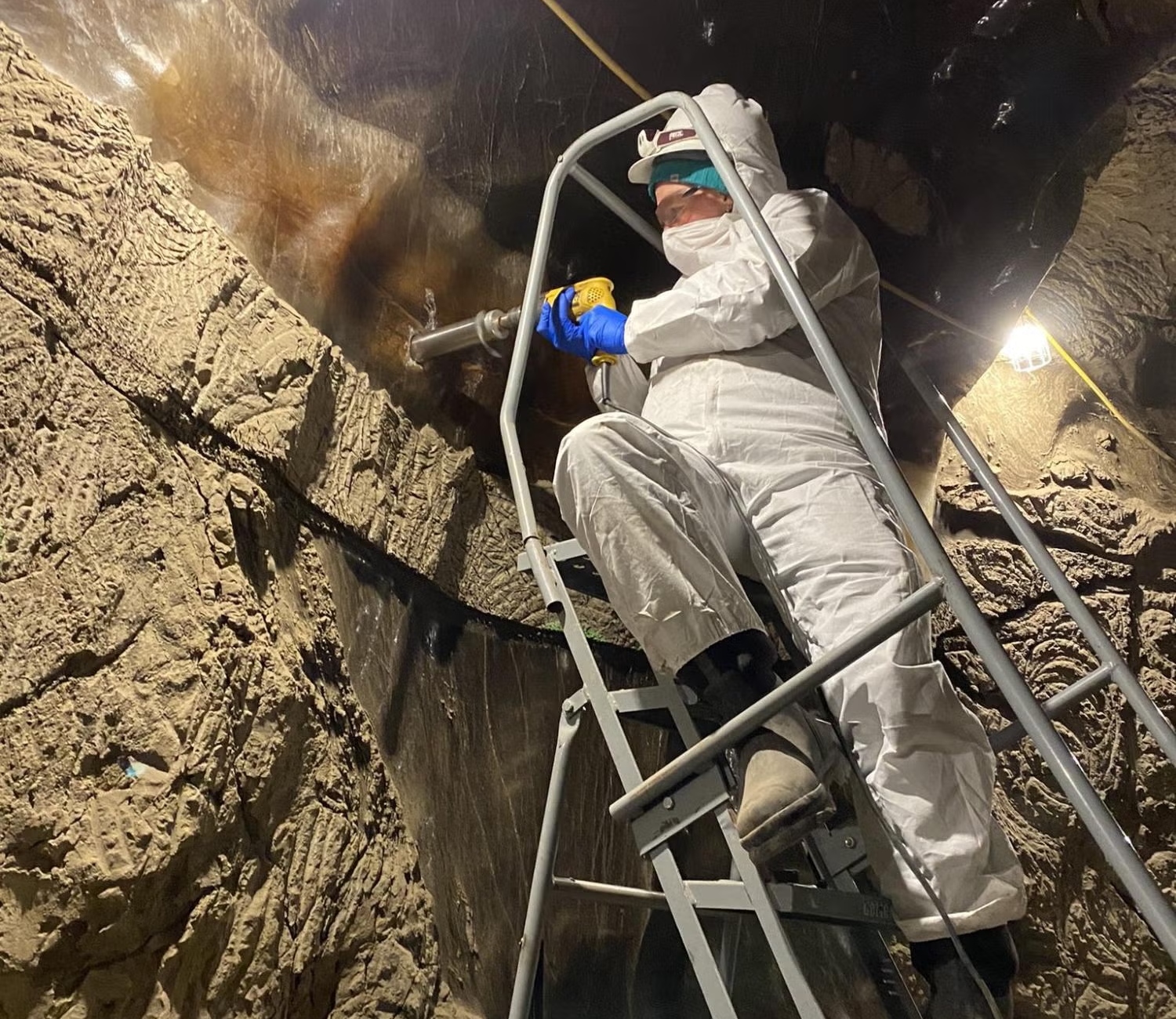 Η Ρόμπιν Μπαρμπάτο από το Εργαστήριο Έρευνας και Μηχανικής Ψυχρών Περιοχών εξάγει ένα δείγμα από τα τοιχώματα της σήραγγας. (Φωτογραφία: Tristan Caro)