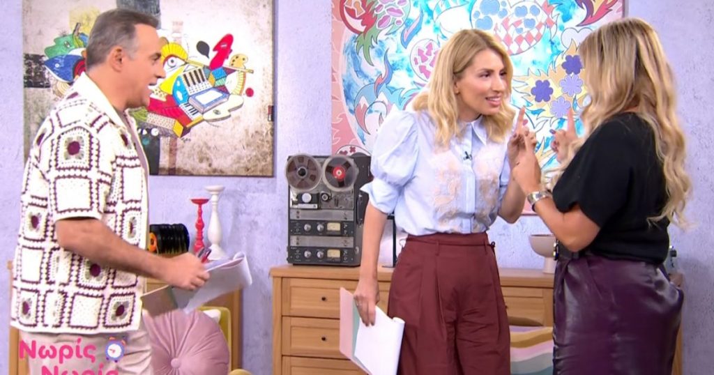 Το πρωί της Πέμπτης, στις 9 Οκτωβρίου, η γνωστή ηθοποιός Ηλιάνα Γαϊτάνη ήταν καλεσμένη στην πρωινή εκπομπή «Νωρίς-Νωρίς», φιλοξενούμενη από τη Μαρία Ηλιάκη και τον Κρατερό Κατσούλη στο πλατό της ΕΡΤ. Η συνάντηση των τριών στον τηλεοπτικό αέρα εξελίχθηκε σε μια διασκεδαστική συζήτηση γεμάτη αλληλεπιδράσεις και αναφορές στην προηγούμενη συνεργασία των δύο ηθοποιών.