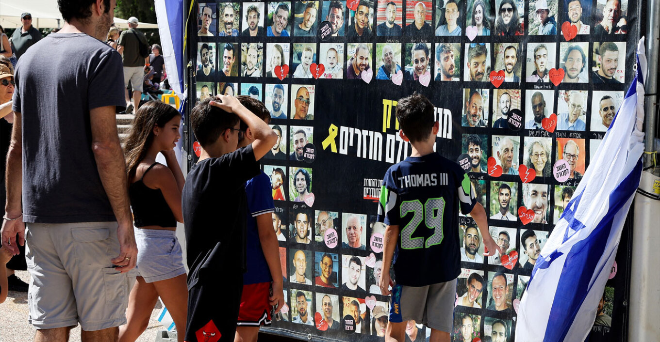 Στην Πλατεία Ομήρων του Τελ Αβίβ, για τις οικογένειες των Ισραηλινών ομήρων που απήχθησαν από τη Χαμάς στη Γάζα και τα πλήθη που υποστήριζαν τον