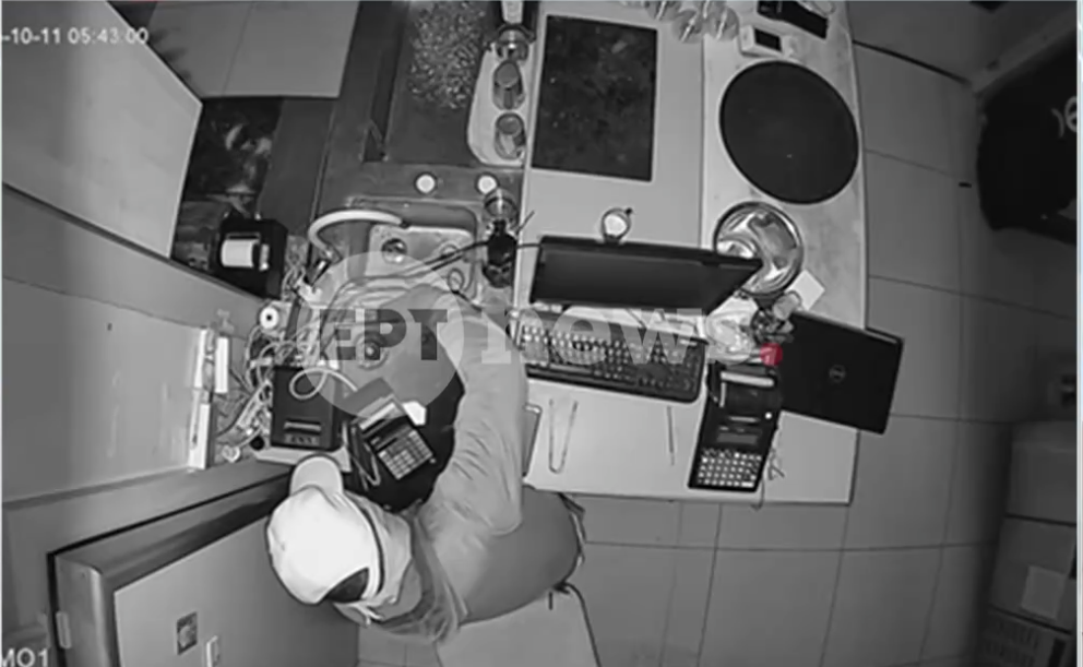 Για τη διάρρηξη στο κατάστημα, στο αποκλειστικό βίντεο – ντοκουμέντο φαίνεται ένας άνδρας να εισβάλλει στον χώρο φορώντας καπέλο, γάντια και μάσκα. Ο δράστης φαίνεται να προσπαθεί επί ώρα να παραβιάσει το ταμείο χρησιμοποιώντας κάποιο εργαλείο, πιθανώς λίμα ή λοστό, ενώ έχει μαζί του φακό και κινητό τηλέφωνο. Τελικά, καταφέρνει να ανοίξει το ταμείο και αφαιρεί περίπου 100 με 200 ευρώ σε κέρματα, προτού αποχωρήσει.