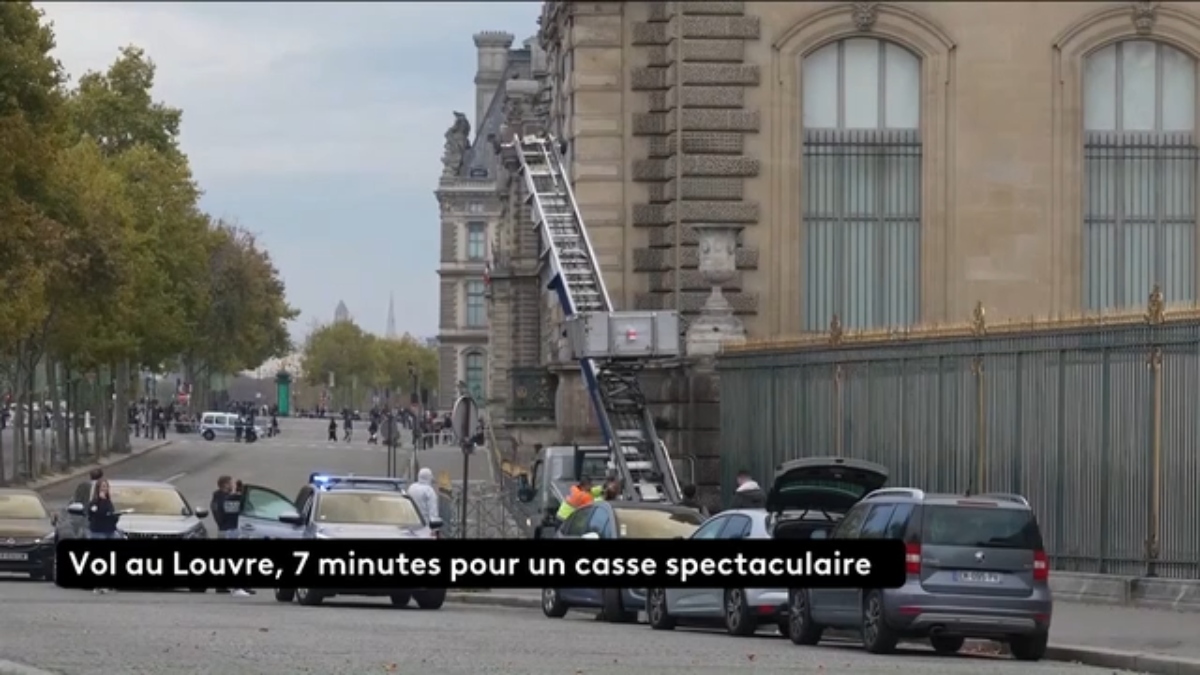 Σε αναζήτηση και του πιο ανεπαίσθητου ίχνους, οι ερευνητές στέκονται μπροστά στο ασανσέρ εμπορευμάτων που φέρεται να χρησιμοποιήθηκε για τη θεαματική ληστεία κοσμημάτων, στην καρδιά του μεγαλύτερου μουσείου του κόσμου — μέρα μεσημέρι — μέσα σε μία από τις πιο πολυτελείς αίθουσες, εκείνη που φιλοξενεί τα γαλλικά κοσμήματα του στέμματος.
