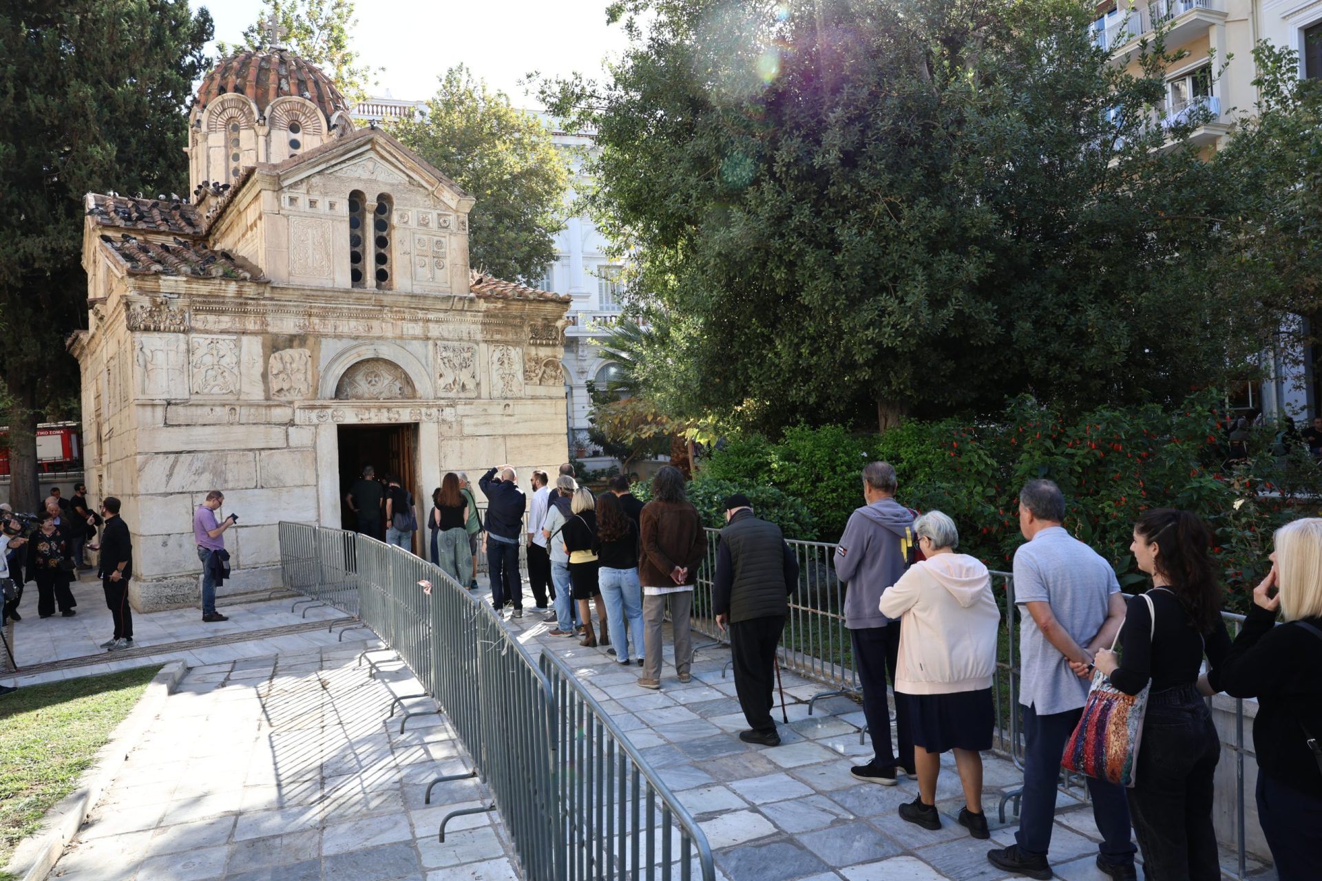 Σε κλίμα συγκίνησης εκατοντάδες άνθρωποι κάθε ηλικίας έχουν συγκεντρωθεί στη Μητρόπολη Αθηνών, περιμένοντας υπομονετικά με ένα λουλούδι στο χέρι για να απευθύνουν το δικό τους χαιρετισμό με ένα νεύμα, ένα δάκρυ, ένα άγγιγμα στο σημείο της καρδιά τους, σαν ένα ευχαριστώ στον άνθρωπο που αγκάλιασε με τις μελωδίες του τις αναμνήσεις τους, και για τον καθένα τους υπήρξε ξεχωριστός, με τόσο διαφορετικό τρόπο.