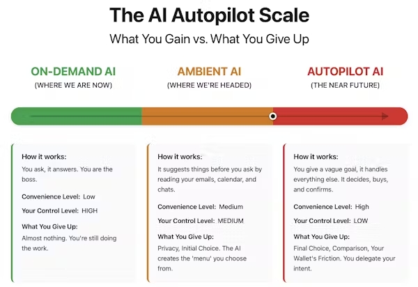 Το ChatGPT έφτασε τους 800 εκατομμύρια εβδομαδιαίους χρήστες τον Σεπτέμβριο του 2025, αναπτύσσόμενο τέσσερις φορές ταχύτερα από τα κοινωνικά δίκτυα. Λίγες μέρες μετά την κυκλοφορία του, μεγάλοι λιανέμποροι άρχισαν να υιοθετούν το Agentic Commerce Protocol. Η ιστορία δείχνει ότι οι άνθρωποι υποτιμούν πόσο γρήγορα προσαρμόζονται σε βολικές τεχνολογίες. Κάποτε, οι περισσότεροι δεν θα σκεφτόταν να μπει στο αυτοκίνητο ενός αγνώστου. Σήμερα, η Uber έχει 150 εκατ. χρήστες.