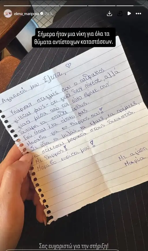 «Σήμερα ήταν μια νίκη για όλα τα θύματα αντίστοιχων καταστάσεων. Σας ευχαριστώ για τη στήριξη» έγραψε η Έλενα Κρεμλίδου σε δημοσίευσή της στο Insragram.