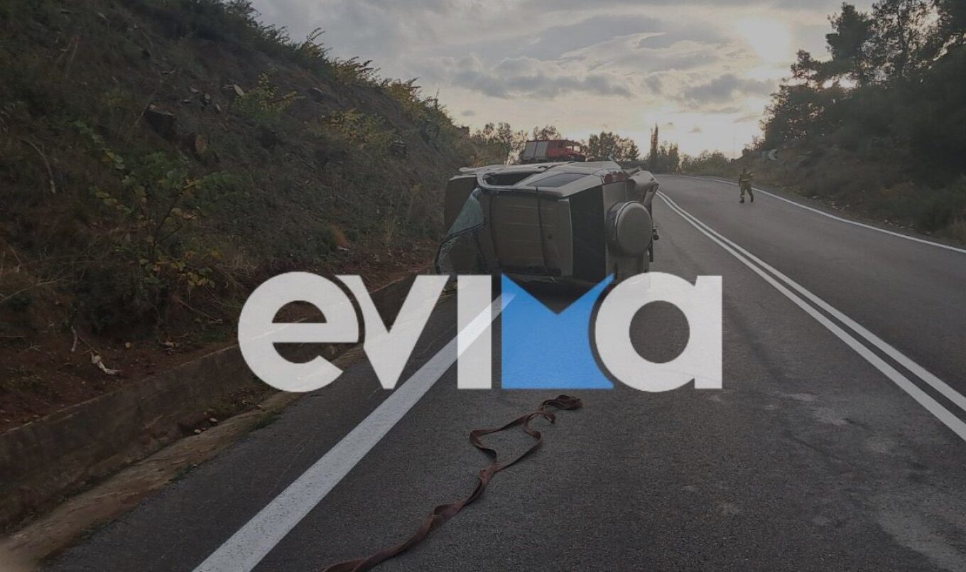 Σύμφωνα με το evima.gr, αυτοκίνητο τύπου τζιπ που κινούνταν στο ύψος του Πανοράματος προς Βόρεια Εύβοια κάτω υπό αδιευκρίνιστες συνθήκες εξετράπη της πορείας του και τούμπαρε σε κεντρικό δρόμο.