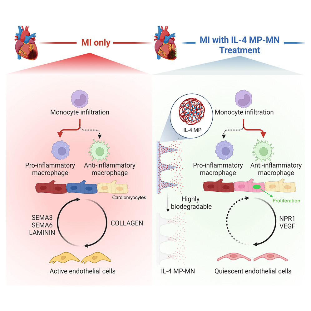 Ένα καινοτόμο επίθεμα μικροβελονών, που ανέπτυξαν ερευνητές στις ΗΠΑ, υπόσχεται να αλλάξει ριζικά την αντιμετώπιση της βλάβης του καρδιακού μυός μετά από έμφραγμα. Το επίθεμα απελευθερώνει στοχευμένα ιντερλευκίνη-4 (IL-4) απευθείας στον τραυματισμένο ιστό, προσφέροντας ακριβή και ελεγχόμενη θεραπευτική δράση.