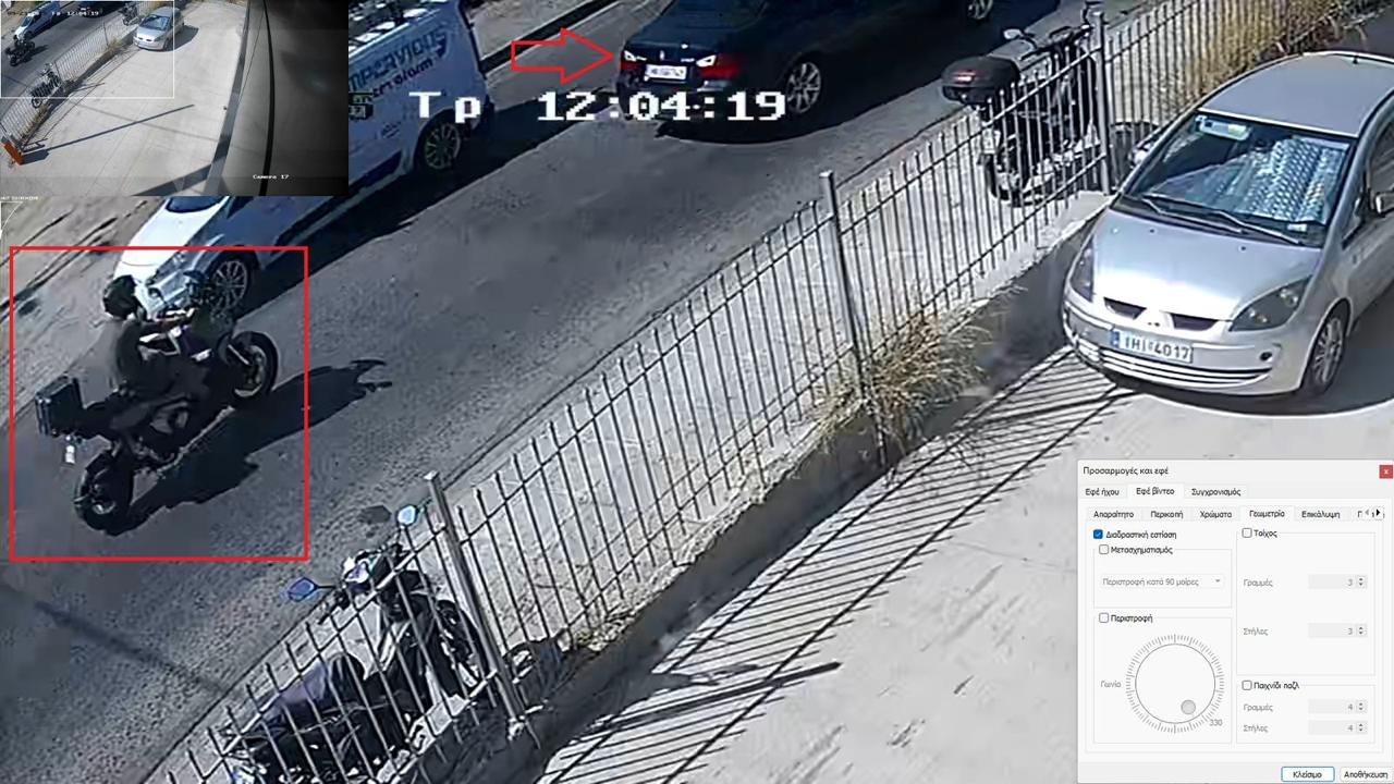 Στα στοπ-καρέ που ακολουθούν, καταγράφονται οι κινήσεις των δραστών στο Παγκράτι τον περασμένο Σεπτέμβριο όπου ο ένας δράστης οδηγεί την μοτοσικλέτα και ο άλλος την πολυτελές μαύρο όχημα, που όπως προέκυψε από την έρευνα των Αρχών είχε μισθωθεί από εταιρεία χρονομίσθωσης και ενοικιάσεων αυτοκινήτων στο όνομα του επιχειρηματία Μανώλη Πετσίτη εδώ και περίπου έναν χρόνο και βρέθηκε στην κατοχή των δραστών με άγνωστο μέχρι στιγμής τρόπο.