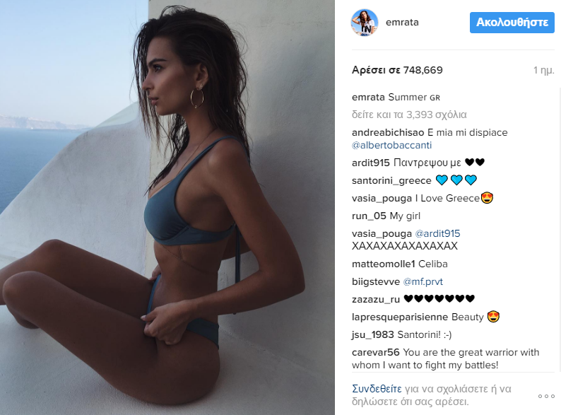 Η Emily Ratajkowski ανέβασε φωτογραφίες της από το καλοκαίρι της στην Ελλάδα αναπολώντας τις όμορφες στιγμές της. Από την Ηλιάνα Φασόλη.