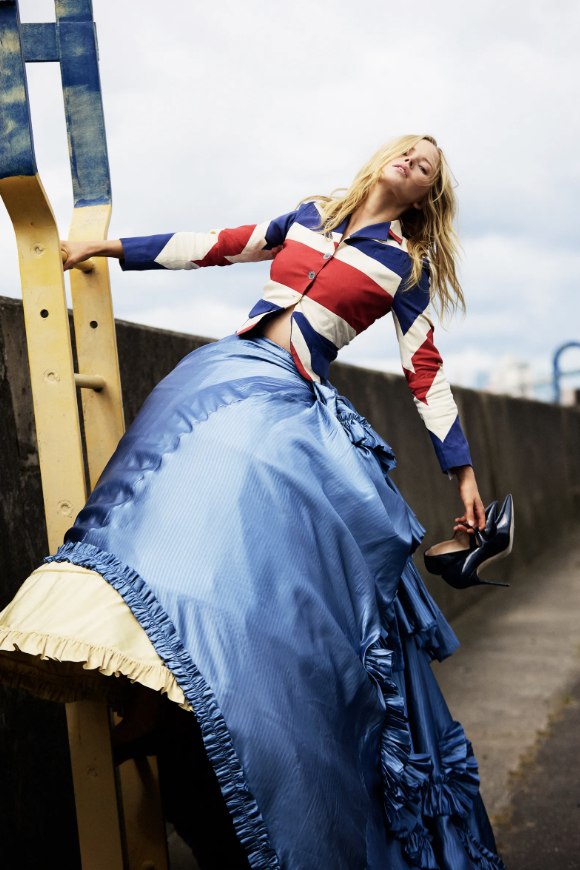 Στην βιογραφική ταινία Moss & Freud η ηθοποιός, Έλι Μπάμπερ εμφανίζεται στο τρέιλερ φορώντας ένα λευκό γούνινο τζάκετ, ενσαρκώνοντας το διαχρονικό icon της μόδας. Αργότερα τη βλέπουμε να τρέχει με την τεράστια φούστα της να κυματίζει μαζί της, ενώ ξεχωρίζει το Union Jack σακάκι εμπνευσμένο από τη βρετανική σημαία, δια χειρός Τζον Γκαλιάνο.