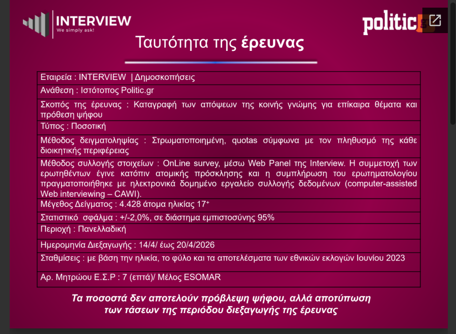 Η δημοσκόπηση της νέας εποχής: ΝΔ σε πτώση χάρη σε ΟΠΕΚΕΠΕ και Λαζαρίδη, σταθερό το ΠΑΣΟΚ αρνείται να πέσει, αρνείται να ανέβει!