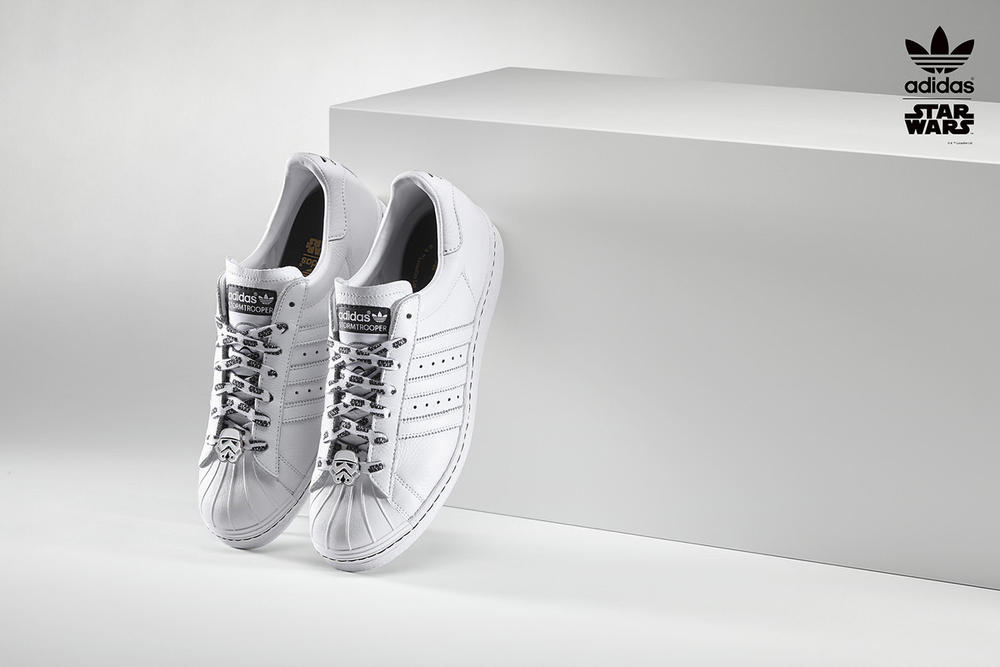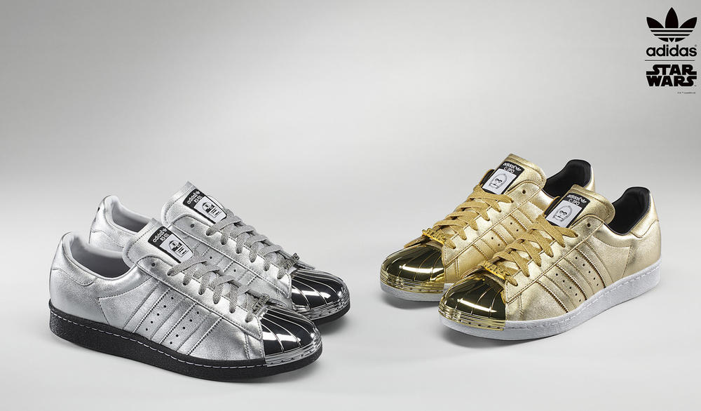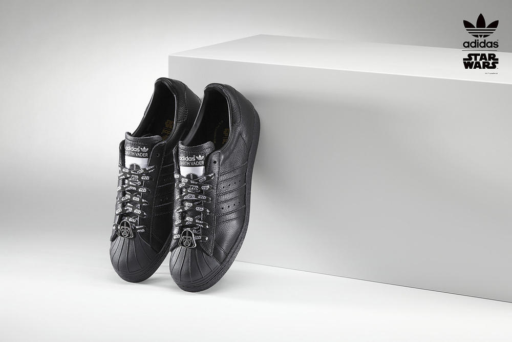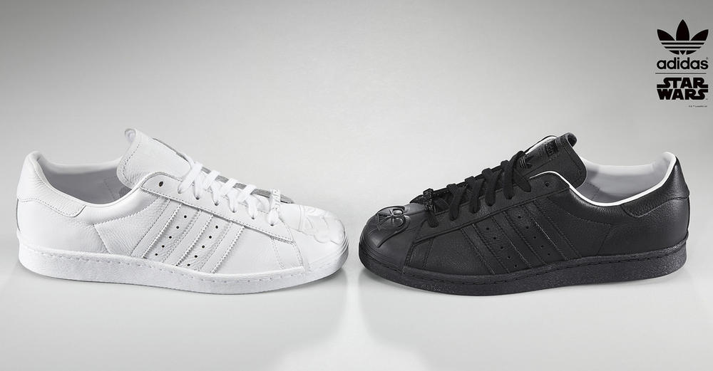 Take a walk on the dark side with Adidas` latest collaboration. The athletic brand has partnered up with Star Wars for a limited edition sneaker, in lieu of the anticipated upcoming flick, Episode VII: The Force Awakens.Riffing off the Adidas Originals` classic Superstar `80s model, consumers will be able to add Stormtrooper prints, exclusive Star Wars laces, gold or silver shell-toes and more. Possibly the raddest of features: the Darth Vader and Stormtrooper molded backs are three-dimensional and look super badass. Prices start at $110 and top off at $120. Just get there fast, as shoes are limited.