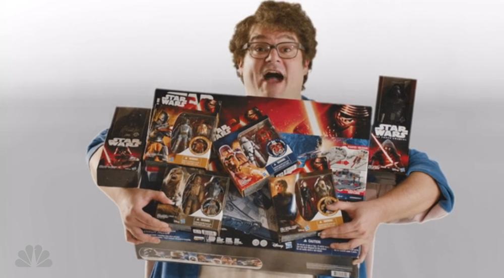 Την ώρα λοιπόν που η ελληνική εταιρία διανομής κοιμάται τον ύπνο του ανίδεου αποφασίζοντας να φέρει την πιο πολυαναμενόμενη ταινία των τελευταίων 5 ετών με μία εβδομάδα καυθστέρηση από τον υπόλοιπο πλανήτη, όλοι οι άλλοι ζουν και αναπνέουν σε ρυθμούς Star Wars. Σιγά λοιπόν μην έλειπε η κλασσική σάτυρα του Saturday Night Live. Αντικείμενο οι Star Wars geeks (που ας μην γελιώμαστε, πρόκειται για το μεγαλύτερο ποσοστό των ηλικιών 30-50), και τα αμέτρητα παιχνίδια που θα συμπληρώσουν τη συλλογή που ξεκίνησαν 35 χρόνια πριν. Για τα παιδιά είπατε; Ναι, καλά.