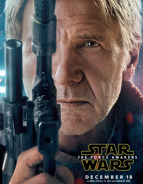 Getting closer to it`s December 18th release, Star Wars: the Force Awakens  releases new character posters of Han Solo (Harrison Ford), Princess Leia (Carry Fisher), and newcomers Finn and Rey played by John Boyega and Daisy Ridley. The wait is getting unbearable. Help.