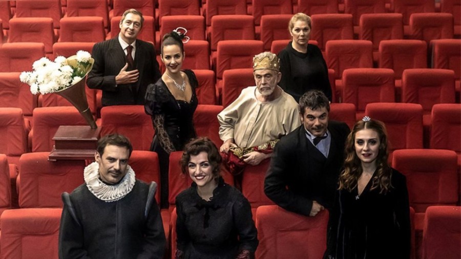 Το χειμώνα του 1896 στην Ερμούπολη της Σύρου, που βαδίζει προς τη δύση της ένδοξης ιστορίας της. Τότε που καταφθάνει ο θίασος της Ευαγγελίας Παρασκευοπούλου για μια παράσταση στο Θέατρο “Απόλλων”. Ο θίασος θα γευματίσει στο μέγαρο των Πινά, μιας παλαιάς οικογένειας που έχει χάσει πια την αίγλη και τα πλούτη της. Ξεπεσμένοι αριστοκράτες και ηθοποιοί μπλέκονται σε ένα σκηνικό θαυμάτων, όπου μυστικά βγαίνουν στο φως, θεατρικά λόγια απευθύνονται σαν βέλη, άριες ακούγονται για πρώτη φορά από το γραμμόφωνο και η αγάπη θριαμβεύει, μεταφέροντας μας σε μια εποχή που έφυγε ανεπιστρεπτί.
