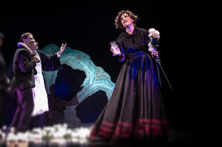 Ο Μάνος Ελευθερίου κάνει μια ανάπλαση της θεατρικής και της μουσικής ζωής. Το μυθιστόρημα διακόπτεται σε όλη του τη διάρκεια από αποσπάσματα μονολόγων ή διαλόγων, κυρίως από τον “’Αμλετ” του – ενώ στη μέση του έργου εμφανίζεται ο Σαίξπηρ “αυτοπροσώπως”, αναλαμβάνοντας ρόλο αφηγητή. Τί σας γοητεύει περισσότερο σε αυτήν την παράσταση και γιατί.