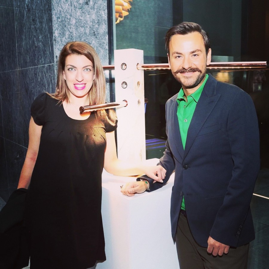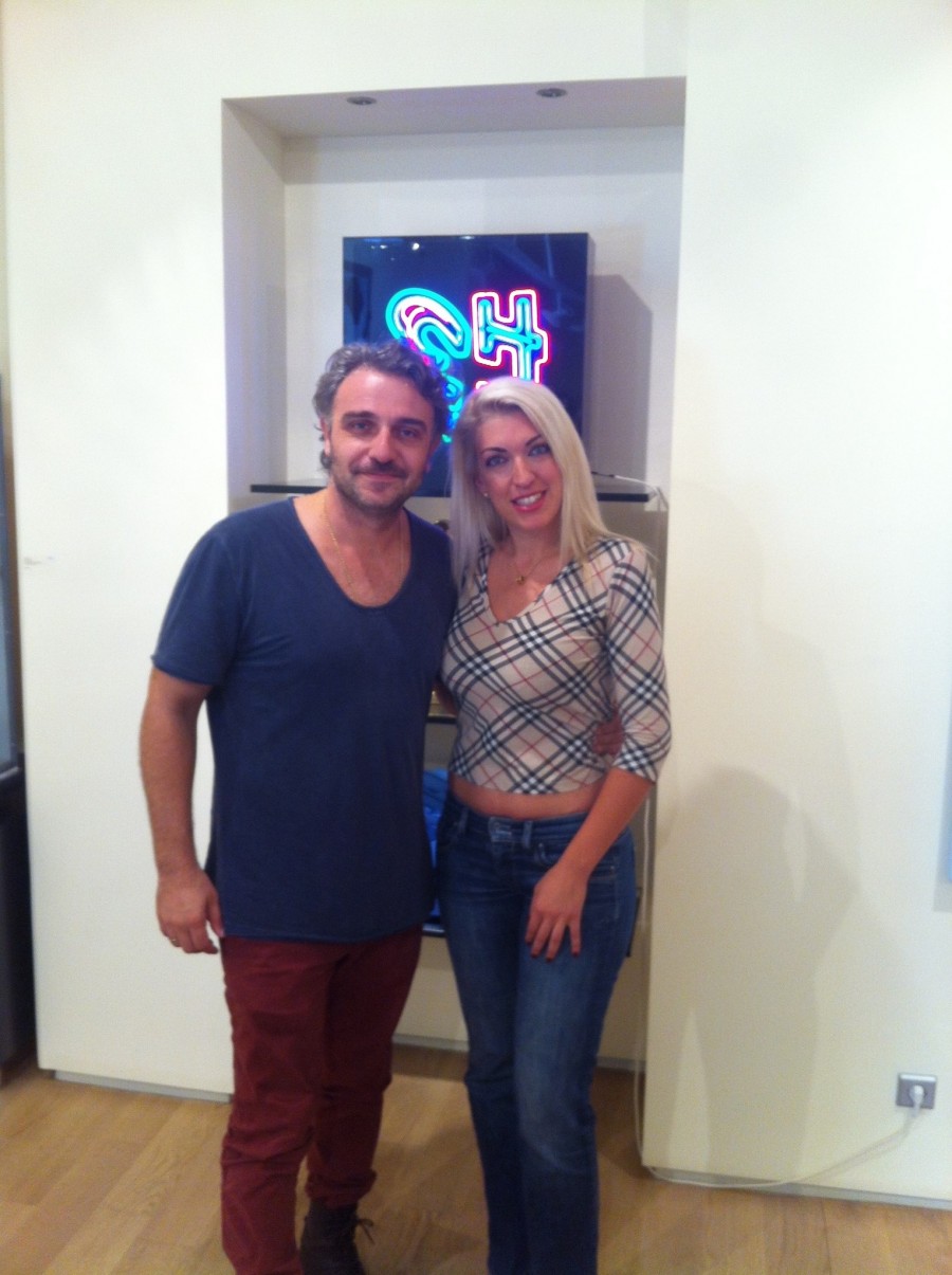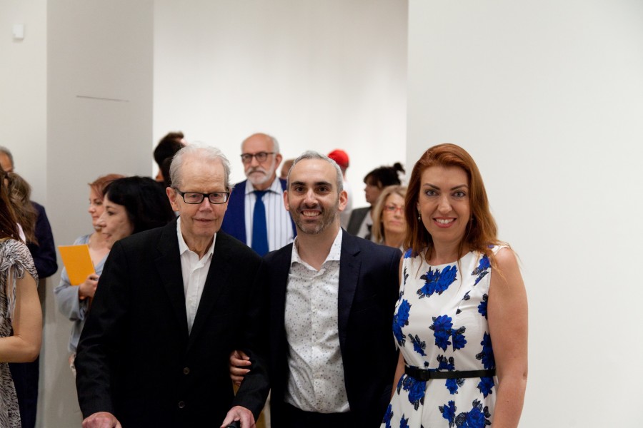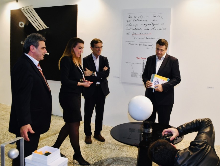 Με τον Φάνη Μουρατίδη και φόντο τα έργα της Chryssa στη Mihalarias Art Gallery