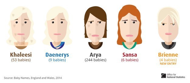 Πλέον δημοφιλές όνομα -και χαρακτήρας της σειράς- αποδεικνύεται το Άρια, από την Άρια Σταρκ με 244 μωρά να λέγονται έτσι.
