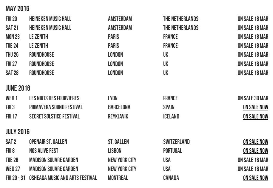 Οι Radiohead θα δώσουν μια σειρά συναυλιών παγκοσμίως, εμφανίσεις που έρχονται να προστεθούν στις ήδη πολυαναμενόμενες φεστιβαλικές τους performances