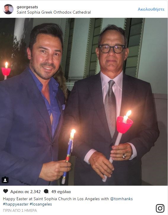 Φέτος, ο σταρ του Χόλιγουντ έκανε Ανάσταση στην Ορθόδοξη Εκκλησία της Αγίας Σοφίας στο Λος Άντζελες και εκεί συναντήθηκε με τον γνωστό παρουσιαστή Γιώργο Σατσίδη, ο οποίος ανέβασε τη σχετική φωτογραφία στον προσωπικό του λογαριασμό στο Instagram.
