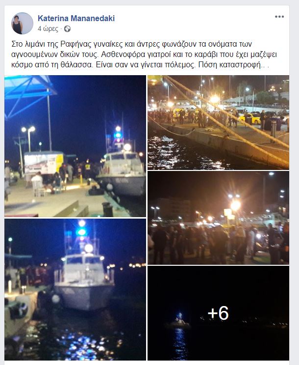 Στο λιμάνι της Ραφήνας γυναίκες και άντρες φωνάζουν τα ονόματα των αγνοουμένων δικών τους. Ασθενοφόρα γιατροί και το καράβι που έχει μαζέψει κόσμο από τη θάλασσα. Είναι σαν να γίνεται πόλεμος. Πόση καταστροφή…