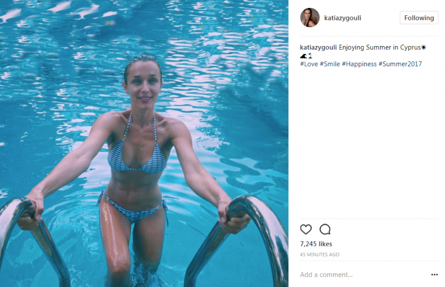 Το νεόνυμφο ζευγάρι βρίσκεται στην Κύπρο. Συνδυάζοντας δουλειά και διασκέδαση, έχει την ευκαιρία να κάνει ένα σύντομο ταξίδι του μέλιτος. Η Κάτια Ζυγούλη, ανάρτησε μια φωτογραφία της στο Instagram, στην οποία φαίνεται να απολαμβάνει χαλαρές στιγμές στην πισίνα.