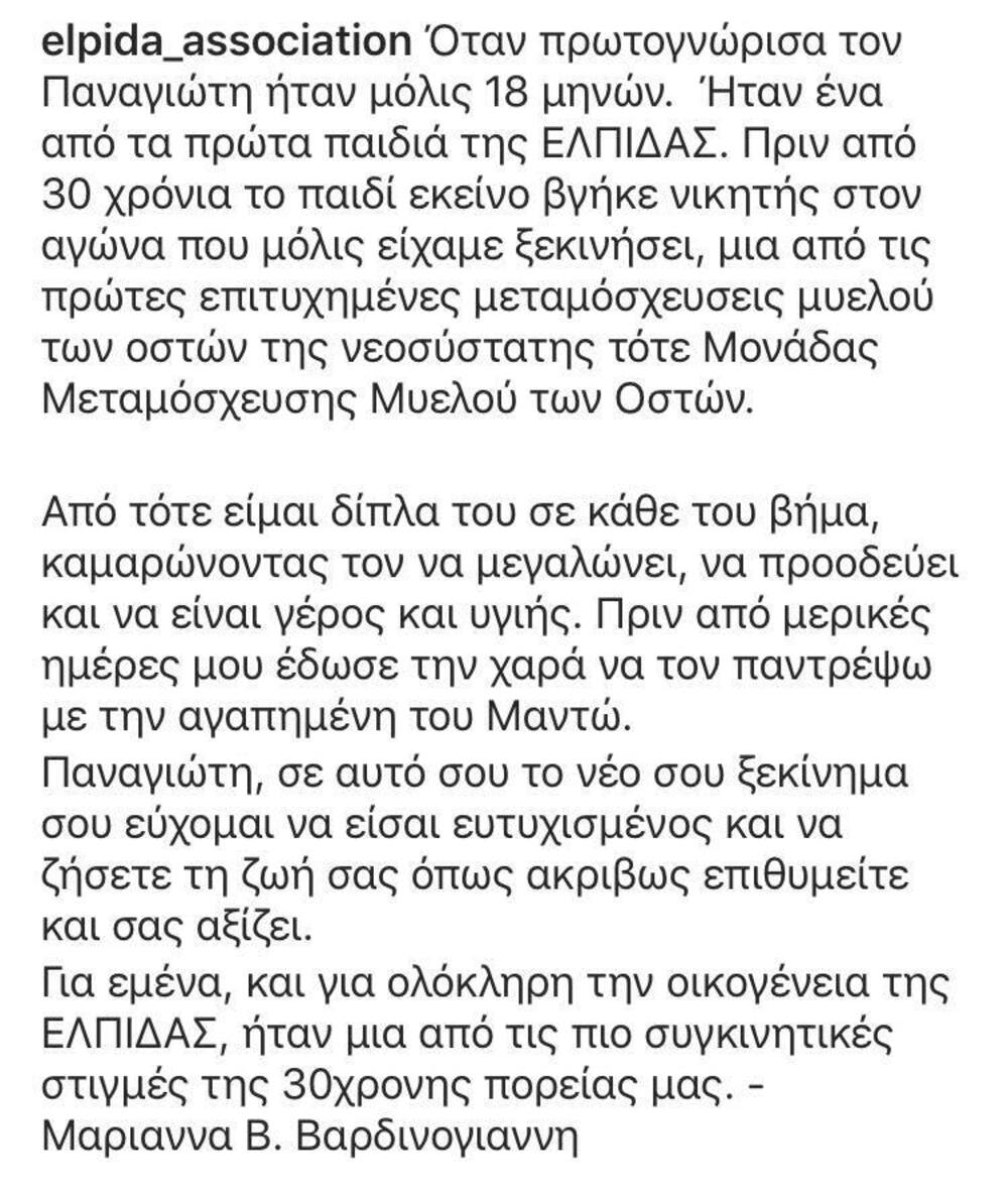 Με την ευκαιρία αυτού του γεγονότος, η Μαριάννα Βαρδινογιάννη έκανε μια συγκινητική ανάρτηση: