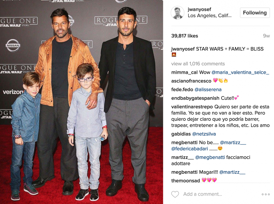 Δεν θέλουμε να το κρύψουμε. Είμαστε μια σύγχρονη οικογένεια και νομίζω ότι οι άνθρωποι πρέπει να μας δουν και θέλω να δείξω πόσο φυσικά όμορφή είναι η οικογένειά μας. Για το λόγο αυτό θα γίνει δημόσια και θα μοιραστώ τον γάμο μου με τον κόσμο», είχε δηλώσει κάποιους μήνες πριν ο RickyMartin σχετικά με τον επικείμενο γάμο του με τον δύο χρόνια παρά κάτι σύντροφό του, Jwan Yosef.