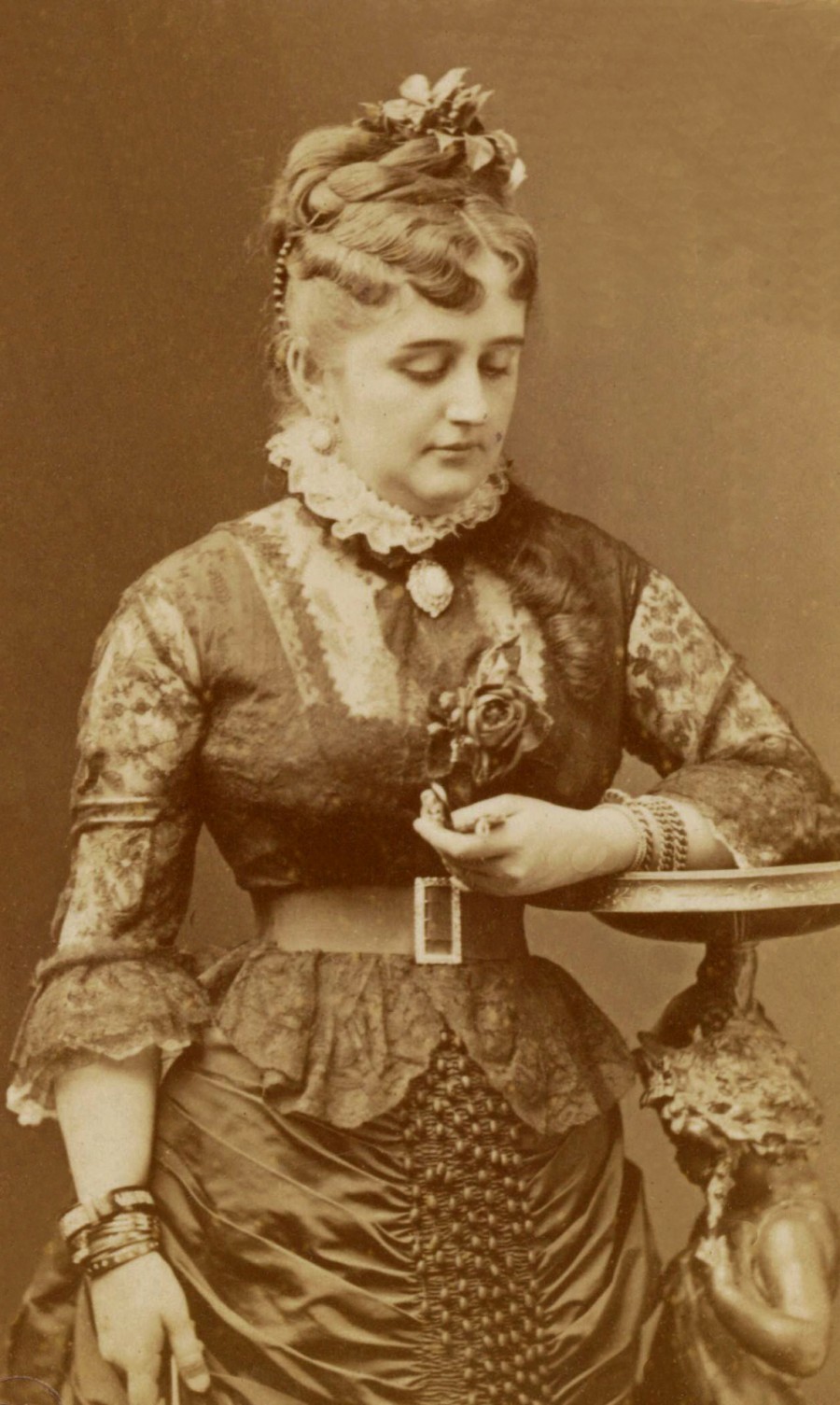“Το πρόσωπο του αυτοκράτορος είναι σφιγμένο. Μοιάζει να έκλαιγε. Στην πόλη διαδίδεται ότι με πολύ μεγάλη θλίψη αποχωρίζεται τη μοναχοκόρη του, το πιο αγαπημένο από τα παιδιά του. Η αυτοκράτειρα, αδυνατισμένη, είναι τρομακτικά ωχρή. Φορά κρεμ σατέν τουαλέτα με μπορντούρα από ζιμπελίνα και ένα πανύψηλο διάδημα από μπριλάντια εν μέσω των οποίων απαστράπτει ένα τεράστιο ροζ διαμάντι. Διαμάντια στολίζουν και τα αφτιά, το λαιμό, τα χέρια, το κορσάζ της, ακόμη και την ουρά της τουαλέτας της, σε σημείο που η Φάνι αναρωτιέται πώς αντέχει το βάρος τους. Καταβάλλοντας υπεράνθρωποη προσπάθεια, κλίνει με χάρη το κεφάλι δεξιά και αριστερά, όμως τα σφιγμένα της χαρακτηριστικά μαρτυρούν το πόσο υποφέρει.”