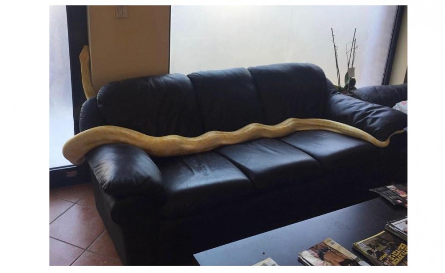 Ο πύθωνας που είχε σε ειδικά διαμορφωμένο χώρο, κατάφερε-άγνωστό πώς-να βγεί έξω απο το «σπίτι” του και να σέρνεται στο πάτωμα του Δημήτρη Σειρηνάκη.
