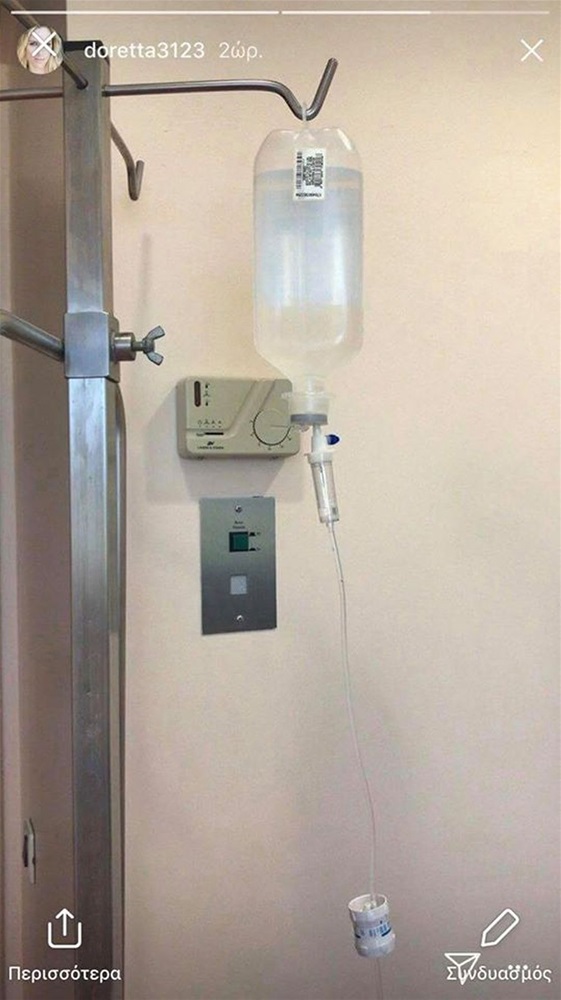 Η παρουσιάστρια, ανέβασε στα insta stories της μία φωτογραφία από δωμάτιο νοσοκομείου, όπου φαίνεται ένας ορός.