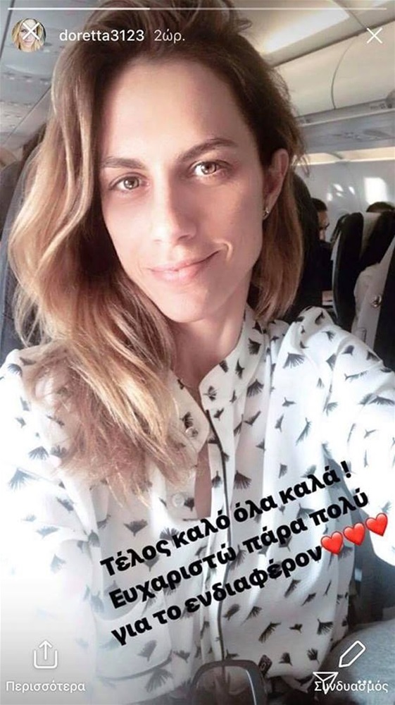 Αν και τα ερωτήματα είναι πολλά σχετικά με το τι μπορεί να της συνέβη, η Ντορέττα καθησύχασε τους διαδικτυακούς της φίλους με μία ακόμη φωτογραφία στην οποία και έλεγε πως «τέλος καλό, όλα καλά».