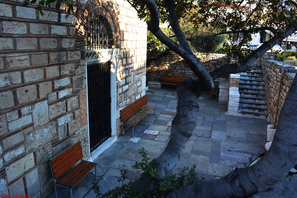 Πρόκειται για μια σημαντική, πετρόχτιστη βυζαντινή εκκλησία του 11ου αιώνα που διαθέτει αυλή. Μπαίνοντας εκεί έχεις την αίσθηση ότι βρίσκεσαι σε αυλή σπιτιού. Το κλίμα είναι σχεδόν οικογενειακό, οπότε μπορεί να μην βρεθείς μόνος σου εκεί για να διαβάσεις. Η θέση της εκκλησίας είναι εντυπωσιακή καθώς στο φόντο της συναντάς τον πέτρινο τοίχο της Ακρόπολης. Οι δύο πέτρινοι όγκοι δένουν αρμονικά μεταξύ τους.