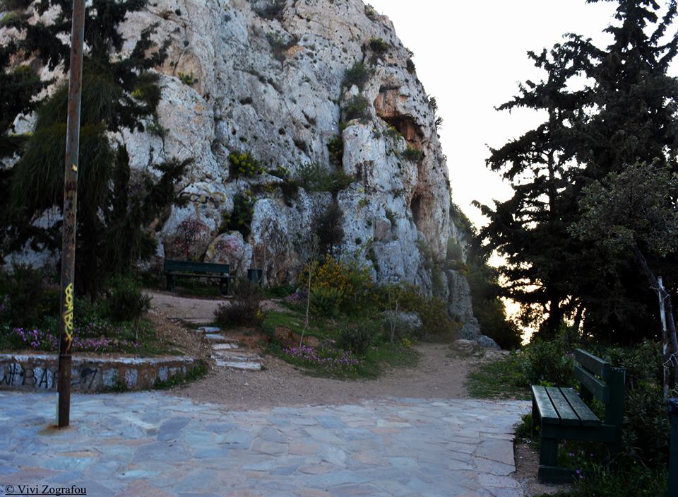Κάτω από τον βράχο του Αη Γιώργη του Λυκαβηττού.