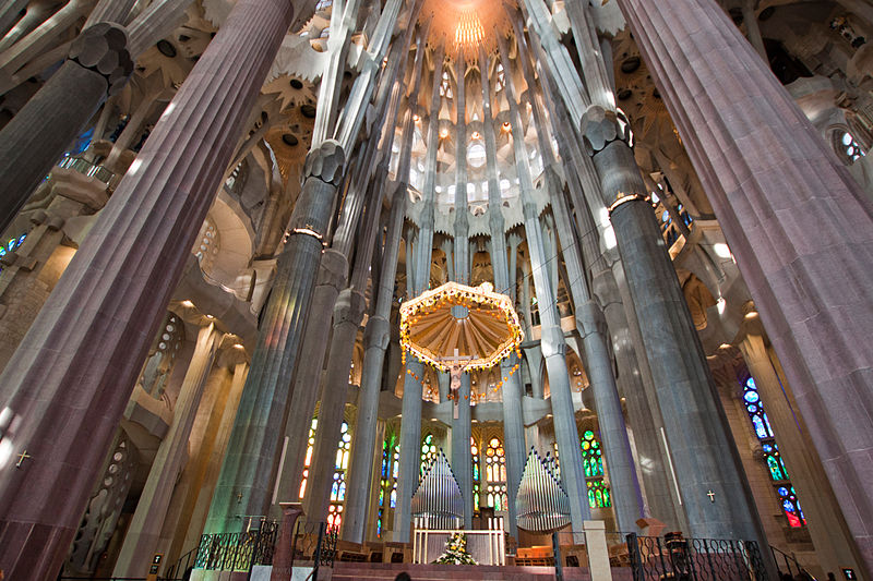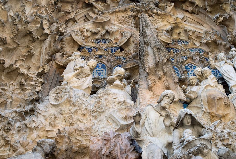 7. Το 1883, ο Gaudi αναλαμβάνει την ανέγερση του καθεδρικού ναού της Βαρκελώνης, την περίφημη Basilica i Temple Expiatori de la Sagrada Familia (Ναός της Ιεράς Οικογενείας) ή -όπως τον ήθελε η λαϊκή παράδοση- του «ναού των φτωχών». Τα σχέδια για την εκκλησία ήταν έτοιμα και οι εργασίες κατασκευής είχαν ξεκινήσει όταν ανέλαβε ο ίδιος το έργο. Ωστόσο, αποφάσισε να αλλάξει τον σχεδιασμό του καθεδρικού ναού και να του δώσει την προσωπική του αισθητική. Αργότερα, ο ίδιος άρχισε να μένει στο εργαστήριό του μέσα στη Sagrada Familia, το οποίο δεν δεχόταν να εγκαταλείψει μέχρι το τέλος της ζωής του. Με το θάνατό του, ο ναός παρέμεινε ανολοκλήρωτος και ακόμα και σήμερα συνεχίζεται η κατασκευή του. Η κατασκευή είναι σήμερα αυτοχρηματοδοτούμενη από τα εισιτήρια των επισκεπτών της (περίπου 2,5 εκατομμύρια επισκέπτες το χρόνο) αλλά και από ιδιωτικές δωρεές. Όταν ολοκληρωθεί, θα είναι η ψηλότερη εκκλησία του κόσμου. Ο Gaudi αναφερόμενος στον Θεό συνήθιζε να λέει σχετικά με την ανέγερση του ναού: «Ο πελάτης μου δεν βιάζεται».