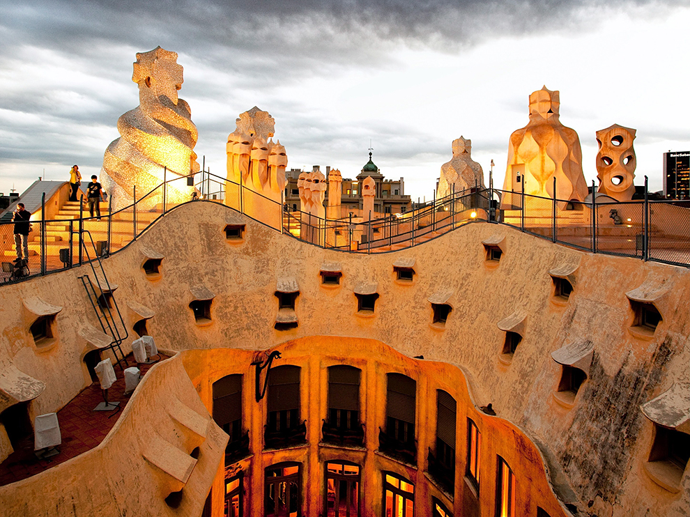 — Casa Mila: Γνωστή και ως «La Pedrera». Σε αυτό το κτήριο δεν υπάρχει ούτε μία ευθεία γραμμή.