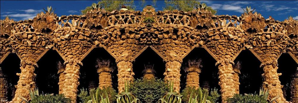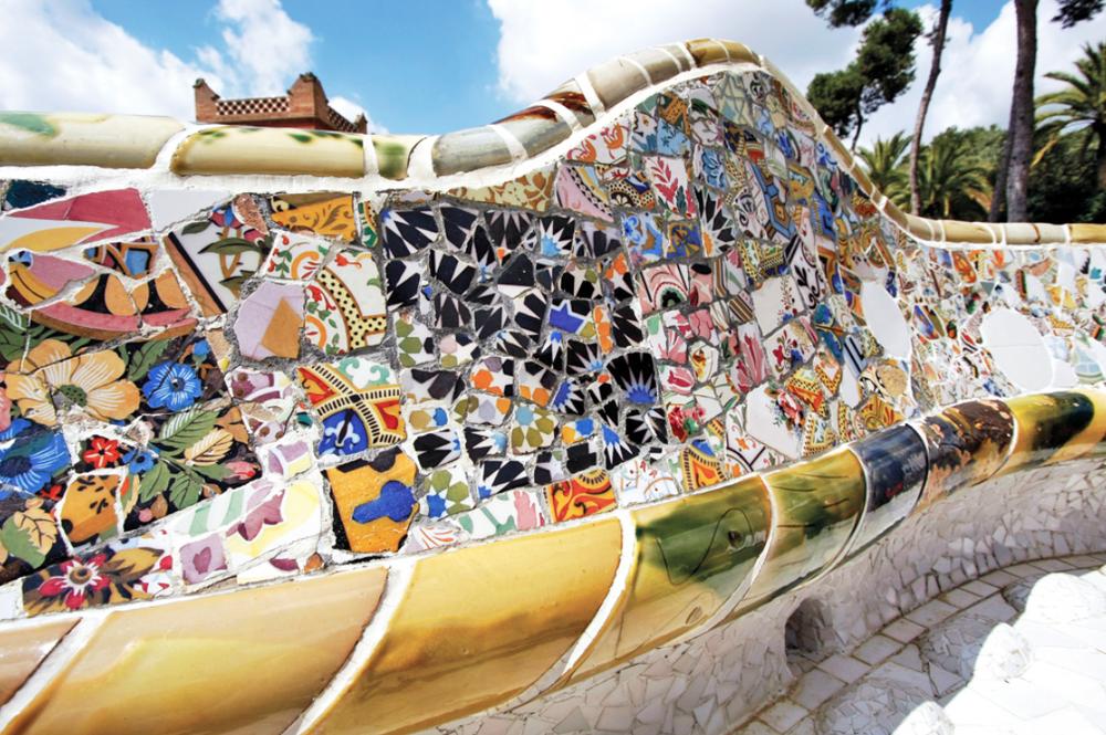 — Πάρκο Güell: Πάρκο σύνθετου αρχιτεκτονικού ρυθμού με πολλά μωσαϊκά.