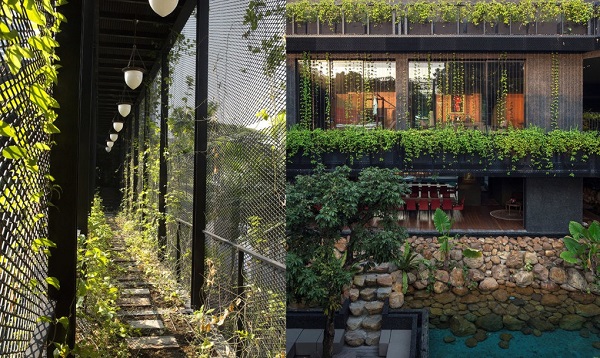 Η εν λόγω κατοικία  είναι σχεδιαστικά μινιμαλιστική και το πράσινο την κατακλύζει. Η ατμόσφαιρα, που δημιουργείται, φυσικά και είναι καταπληκτική. Οι ένοικοι των διαμερισμάτων αυτών μπορούν να έχουν θέα προς τους κήπους από τα κύρια δωμάτια του σπιτιού, ενώ στην κεντρική αυλή των σπιτιών θα βρουν μια λίμνη με ψάρια. Διάφορα είδη φυτών και κάποια δεντρά κάνουν την εμφάνιση τους στο μυστικό αυτό κήπο κάνοντας το κέντρο των κατοικιών να μοιάζει με μια μικρή ζούγκλα!
