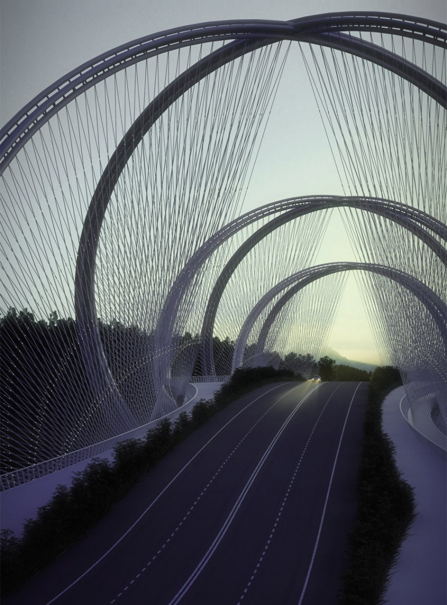 Μπορεί οι Ολυμπιακοί Αγώνες στο Πεκίνο να αργούν λίγο, αυτό δε σημαίνει πως και οι ετοιμασίες τους πρέπει να γίνουν την τελευταία στιγμή… Το αρχιτεκτονικό γραφείο Panda  έπιασε δουλειά και σχεδίασε μία νέα γέφυρα, που θα συνδέει το Πεκίνο με τη γειτονική πόλη Zhangjiakou. Μάλιστα, στη συγκεκριμένη πόλη θα φιλοξενηθούν αθλήματα των Ολυμπιακών Αγώνων, που γίνονται σε εξωτερικούς χώρους. Το αρχιτεκτονικό γραφείο ήθελε η γέφυρα να έχει εσάνς Ολυμπιακών Αγώνων και το πέτυχε!