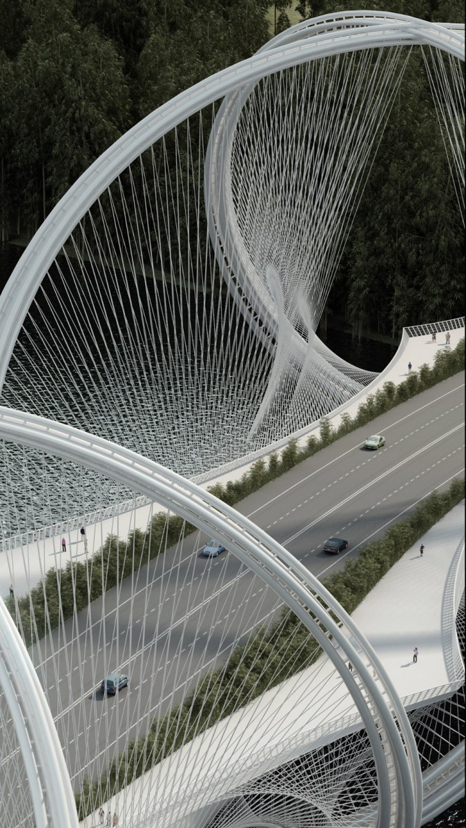 Το αρχιτεκτονικό γραφείο Penda εμπνέεται από τα αθλήματα των Ολυμπιακών Αγώνων και δημιουργεί αυτή τη περίτεχνη γέφυρα.