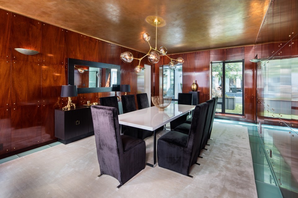 Στον δεύτερο όροφο θα βρει κανείς τη master suite με το τζάκι, δυο δωμάτια-γκαρνταρόμπες, 5 υπνοδωμάτια και 4,5 μπάνια. κι ένα χαμάμ. Ακόμα δύο επίπεδα είναι διαμορφωμένα σε βεράντες και αποτελούν ένα ήρεμο καταφύγιο μέσα στη μεγαλούπολη. Επίσης, υπάρχει ιδιωτικό πάρκινγκ με επτά θέσεις.