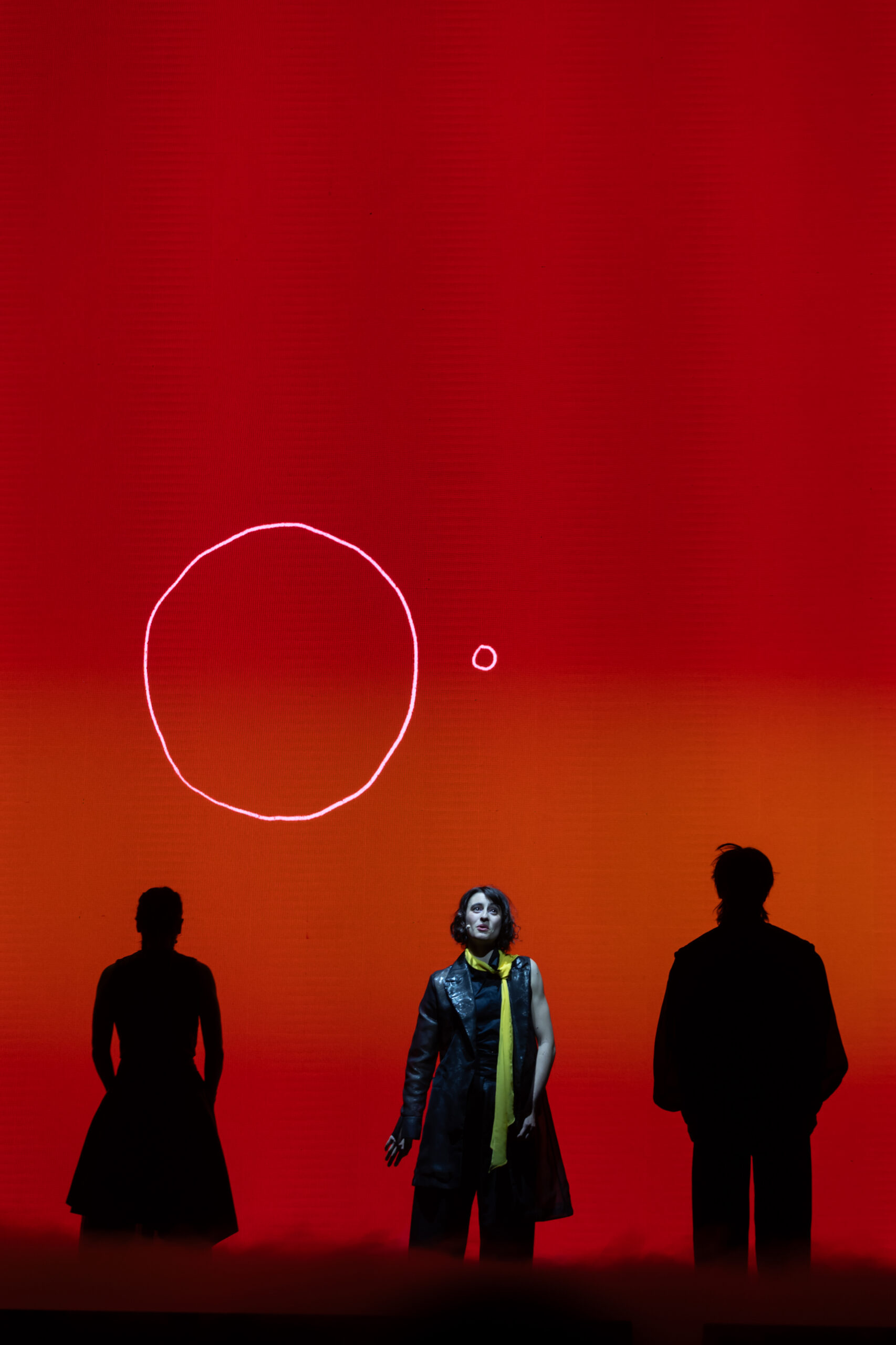 Ο κινηματογραφιστής και δημιουργός κόμικς Γιώργος Γούσης (τον γνωρίσαμε από τα χειροποίητα «Μαγνητικά Πεδία», στη συνέχεια από τον ωραίο του «Χειροπαλαιστή») έχει σκηνοθετήσει αριστοτεχνικά αυτή την φιλοσοφική αφήγηση που δεν αφήνει καθόλου να ξεφύγει από την τροχιά της, λειτουργεί σε πολλά επίπεδα, μεταβάλλεται συνεχώς σαν η μία φόρμα να σβήνει αθόρυβα και φυσικά μέσα στην άλλη, και η οποία υποστηρίζεται και από σκίτσα, σαν ζωγραφιές μικρού παιδιού, που προβάλλονται στο φόντο σε γιγαντοθόνη και ζωντανεύουν τριαντάφυλλα, βόες, φίδια, μπαομπάμπ και πλανήτες (Αριστοτέλης Μαραγκός, Χρυσούλα Κοροβέση, Γεώργιος Χερουβείμ). Υποστηρίζεται και από τους φωτισμούς της Ελίζας Αλεξανδροπούλου που μεταμορφώνουν με φως ή σκοτάδι, σκιές, ή εκτυφλωτικούς φωτισμούς τα οπτικά περιβάλλοντα, και βεβαίως από τους μουσικούς. Ο Coti K. (που υπογράφει και την ενορχήστρωση μαζί με τον Αγγελάκα), ο Νίκος Γιουσέφ, ο Περικλής Τσουκαλάς και ο Κωνσταντίνος Ζάμπος στήνουν το αλλόκοτο τούτο ηχητικό τοπίο, που ακούγεται σαν ένα μπλουζ, ηλεκτρισμένο και ηλεκτρικό, άλλες φορές βροντερό σαν ροκ τζαμάρισμα κι άλλες σιγοψιθυριστό σαν μοιρολόι που θα κορυφωθεί. Τα σκηνικά του Λουκά Μπάκα και τα κοστούμια της Κατερίνας Ζούρα, σημαντικές κι αυτές όψεις σε ένα συμπαγές μουσικοθεατρικό ψηφιδωτό που αντηχεί και βιώνεται σαν μια μυστηριακή τελετουργία.