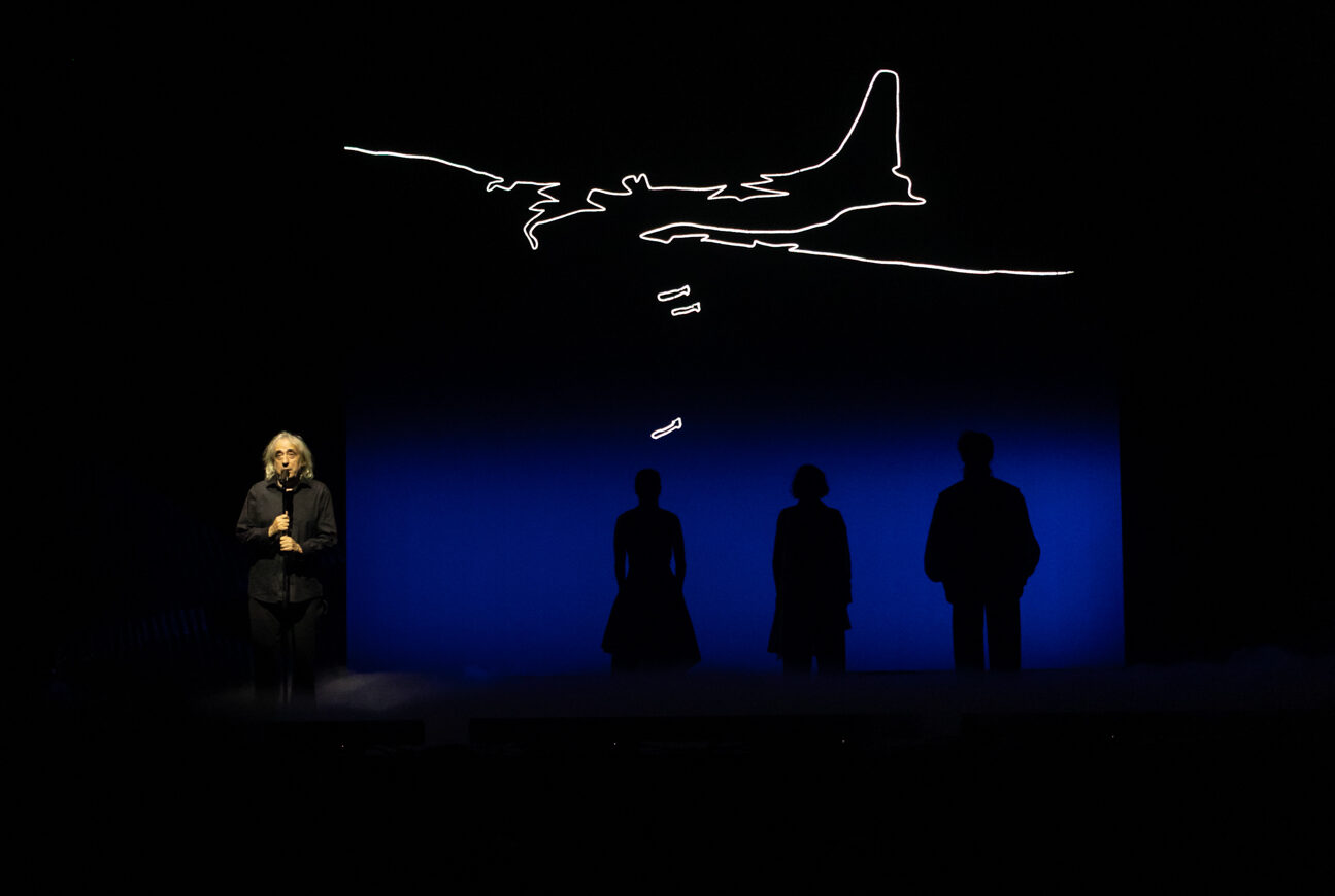 «Παράξενοι που είναι οι μεγάλοι, κι ακόμα πιο παράξενος κι εγώ που τραγουδώ», μας λέει ο Γιάννης Αγγελάκας από την αρχή σαν να κάνει μια δήλωση ταυτότητας, βαθιά υπαρξιακή, σαν μια ευθεία αντιστοιχία ανάμεσα στον αγνό κόσμο των παιδιών και το σύμπαν των καλλιτεχνών, όπως είναι ή όπως θα έπρεπε να είναι, ένας τόπος όπου δεν θα μπορούν οι μεγάλοι να λερώνουν τα όνειρα τους. Είναι αυτός ο αφηγητής πιλότος που θα μας πάρει από το χέρι και θα μας ταξιδέψει στην έρημο, εκεί όπου πέφτει το αεροπλάνο του και γνωρίζει τον Μικρό Πρίγκιπα που του ζητά να του ζωγραφίσει ένα αρνί και θα του μιλήσει για τον πλανήτη του με τα τρία ηφαίστεια και το ένα τριαντάφυλλο. Η μαυροντυμένη φιγούρα του Αγγελάκα, η βαθιά και δωρική του φωνή, που σαν να έρχεται από τα έγκατα της γης ή τα μακρινά βάθη ενός απόκοσμου γαλαξία, γήινη και μυστικιστική μαζί, είναι ο οδηγός στο μυαλό και τη σκέψη του Μικρού Πρίγκιπα, που γνώρισε αυταρχικούς βασιλιάδες που ήθελαν θαυμαστές, γεωγράφους που ονειρεύονταν να κάνουν χάρτες αλλά δεν είχαν ταξιδέψει πουθενά, επιχειρηματίες που νόμιζαν ότι τους ανήκαν τα αστέρια, μεθύστακες, φανανάφτες…