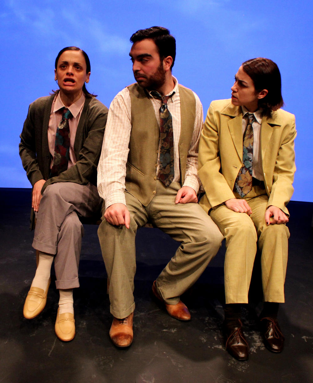 Σε ένα λιτό σκηνικό, με τρεις μόνο καρέκλες και φόντο τον ουρανό, οι τρεις ηθοποιοί σε απόλυτη αρμονία, σαν να είναι μία φωνή κι ένα σώμα, μας «ξενάγησαν» στο δύσκολο, γλωσσικό μεγαλείο του Σκαρίμπα, που βρίθει από λέξεις – αργκό, λέξεις που έχει πλάσει ο ίδιος ο συγγραφέας, ιδιωματισμούς, ηθελημένα λάθη που δημιουργούν αμφισημίες, αλλά κυρίως από συναισθήματα που «γεννά» η έκρυθμη συμπεριφορά της γλώσσας του.