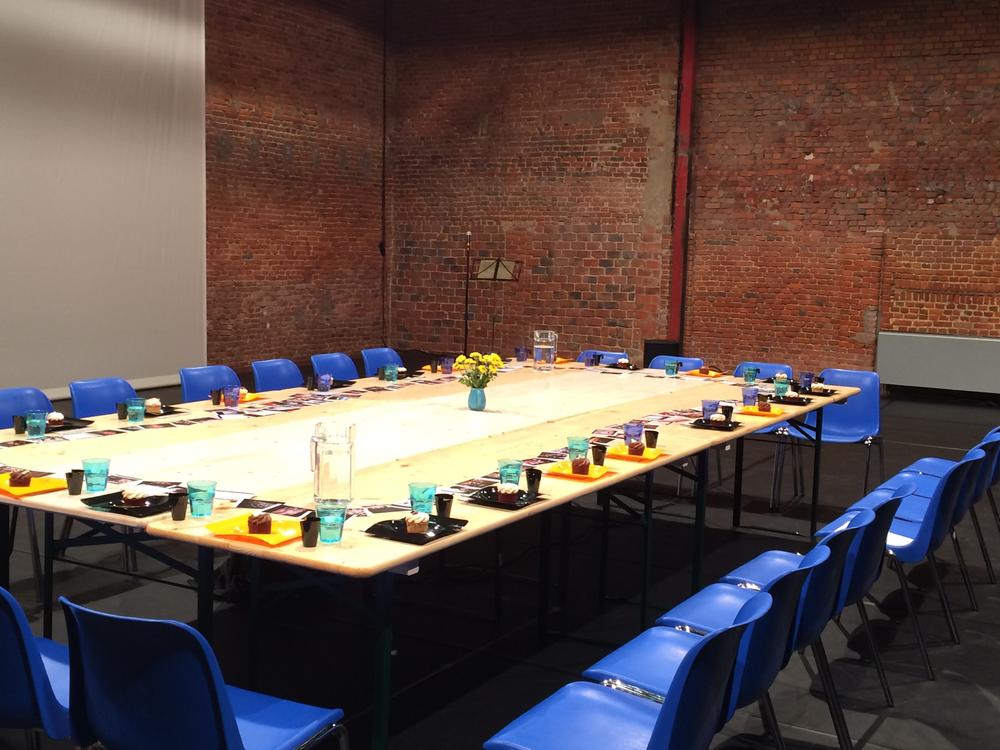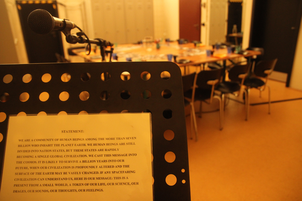 Η παράσταση της νεαρής σκηνοθέτιδας αποτελεί τη συνάντηση μιας μικρής ομάδας ανθρώπων γύρω από ένα τραπέζι στρωμένο με γλυκά και ποτά για όλους. Εκεί, με χιουμοριστική και ταυτόχρονα κριτική διάθεση, δύο γυμνοί κάτοικοι της γης εισάγουν τους καλεσμένους τους στις βασικές αρχές της ζωής στον πλανήτη μας σαν αυτές να τους ήταν εντελώς άγνωστες. Όλα αυτά συμβαίνουν στην κατεξοχήν γλώσσα του διαστήματος, την αγγλική.